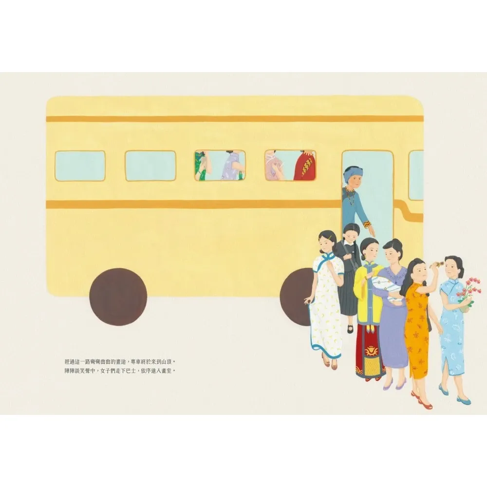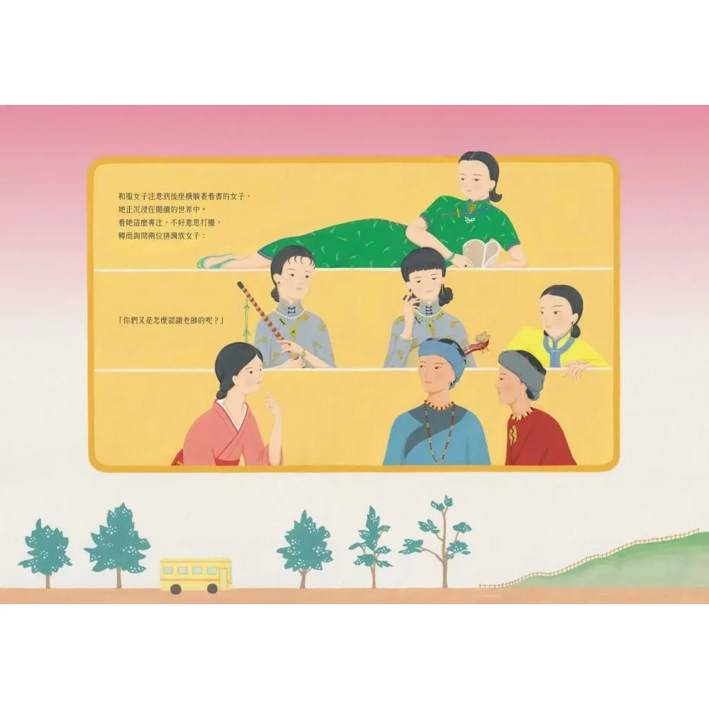 跟著巴士緩緩前行,穿越花木與時光流轉,進入陳進的創作世界;不以生平紀事為主,而以詩意和幻想交織的方式重構陳進的一生──讀來像夢,也像畫。