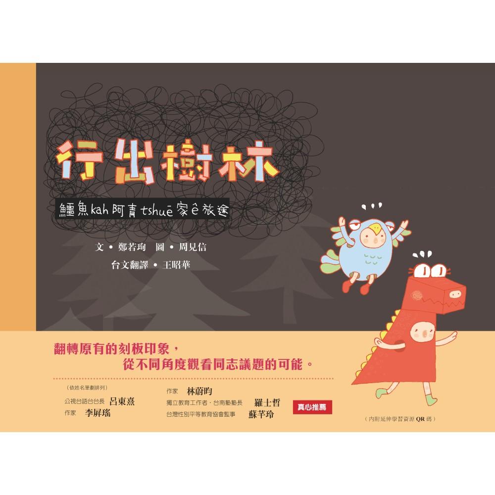 本書同時推出華語版《走出森林:鱷魚和阿青的尋家之旅》,以及由金馬獎最佳原創電影歌曲得主王昭華翻譯的臺語版《行出樹林:鱷魚kah 阿青tshuē家ê旅途》。