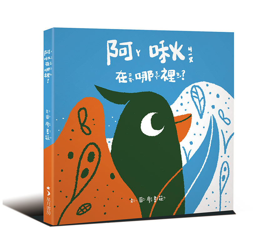 星月書房首本嬰幼兒繪本──《阿啾在哪裡?》選用對比強烈的藍、橘、綠、白四色,在活潑的色塊上,點綴豐富的質地與線條,搭配動態感十足的構圖設計,為視覺發展尚在起步的嬰幼兒,帶來特殊的感官刺激與體驗。
