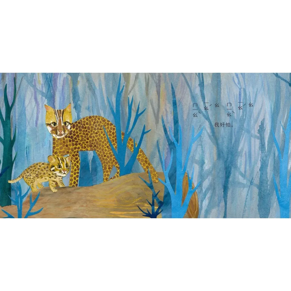 這一次,她經由細膩的紙雕手藝和拼貼美感,鮮活地展現出14種動物的外貌特徵和日常神態,並結合狀聲詞的概念,表現出超過10種動物寶寶的聲音,而且融入人類生活中常見的親子對話,像是:「跟我玩。」「好好吃噢!」「等等我啊。」完成一本親近、生動而溫暖的寶寶書。